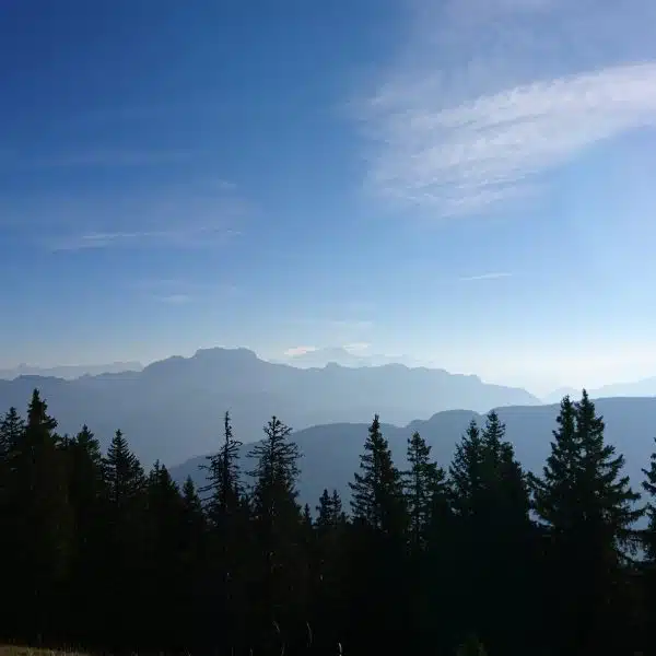 Une fois arrivé en haut au Col des Contrebandiers dans la prairie vous n’aurez malheureusement pas de vue sur le Lac d’Annecy. En revanche vous aurez à votre disposition de nombreux sentiers et itinéraires pédestres qui vont vous permettre d’accéder au Balcon des Contrebandiers.